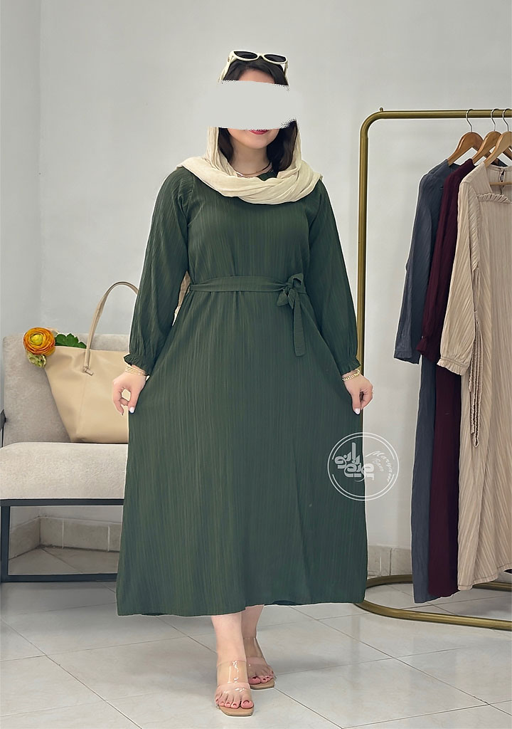 جنس این پیراهن کراش دارای کمر بند از جنس خودش