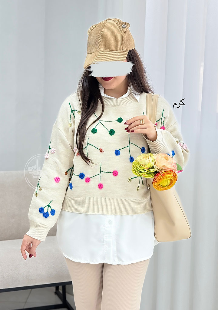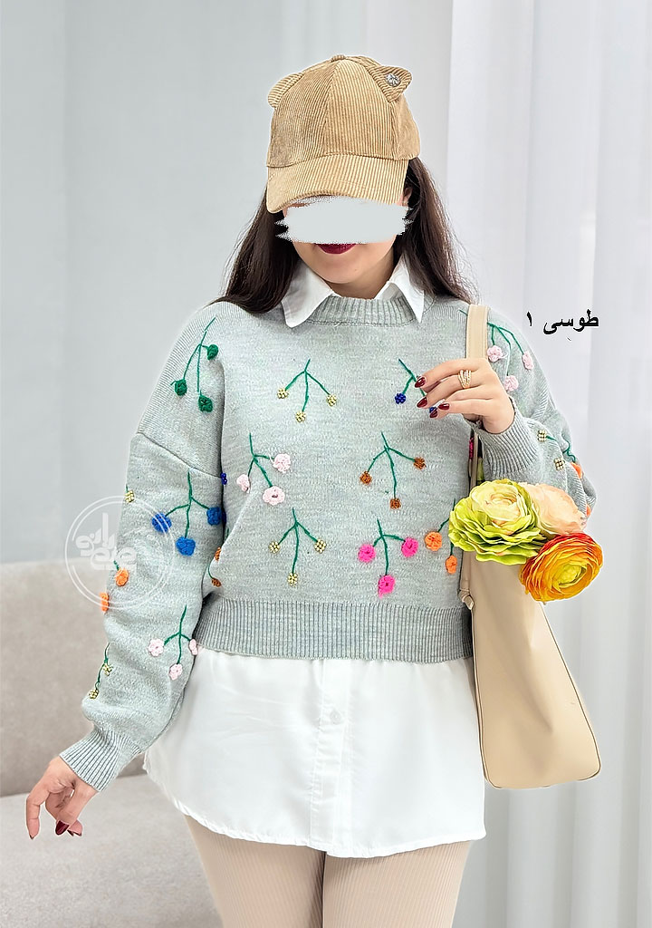 - روی پلیور گلدوزی و مروارید دوزی شده