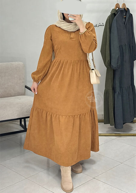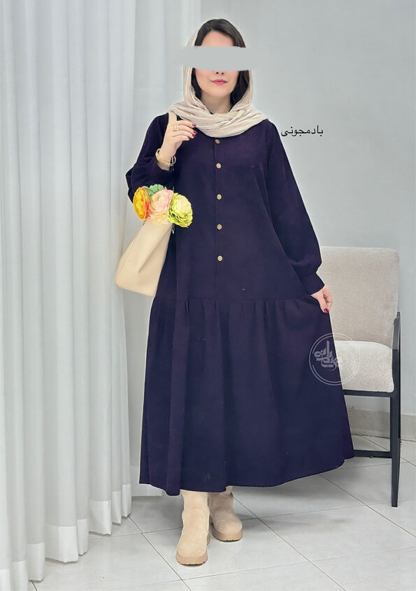 پیراهن مانتویی ساتیا جنس : مخمل کبریتی تک جیب + کمربند از جنس خود پیراهن